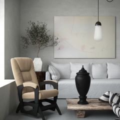 Для комфортного отдыха имеет маятниковый механизм глайдер, который выполняет классическую функцию покачивания, при этом она не проминает напольное покрытие. Кресло обтянуто мебельной тканью или искусственной кожей, каркас-дерево, боковины выполнены в виде криволинейных деталей, образующих ножки-опоры, материал боковины фанера. На боковинах имеются мягкие подлокотники.