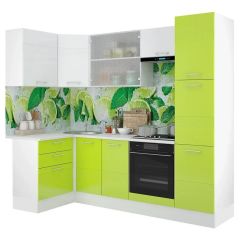 Кухонный гарнитур Люкс угловой 1200*2450 Белый глянец/Лайм глянец (модульный) Горизонт | фото