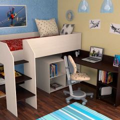 Кровать-чердак "Теремок-2" Дуб молочный/Венге