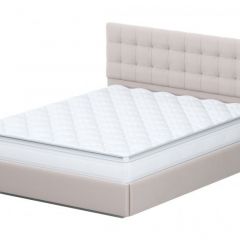 Кровать двойная №2 (универсальная 1.4х2.0) Серия 2 + основание с ПМ (Белый/Бежевый ткань/Квадро Бежевый ткань)