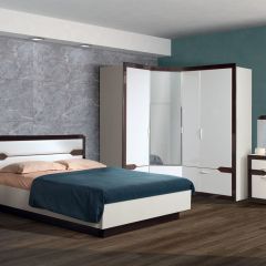 Спальня «Ронда» – модульная мебель в современном стиле, выполненная в виде горки. Благодаря сочетанию 2-х контрастных декоров – белого и венге с глянцевыми и матовыми поверхностями, выглядит эффектно и стильно. Завершают внешний облик белые глянцевые ручки итальянского производства. Модель включает 11 самых востребованных модулей для спальной комнаты:шкаф для платья и белья 3-дв,шкаф угловой, шкаф пенал, шкаф для платья и белья 2 - дв, комод, стол туалетный, зеркало, тумба прикроватная, кровать 1600 двойная, кровать 1600 с подъемным основанием.